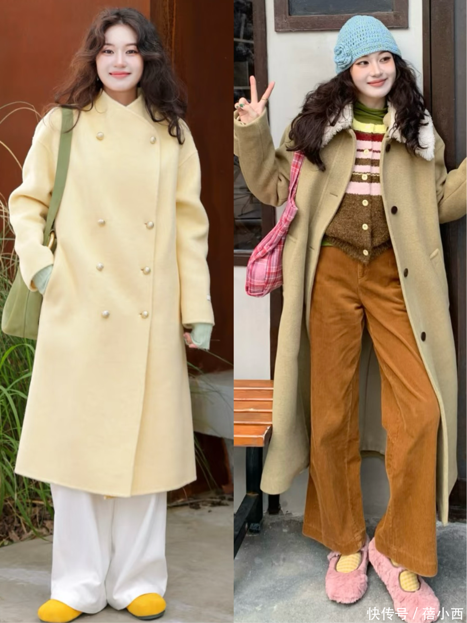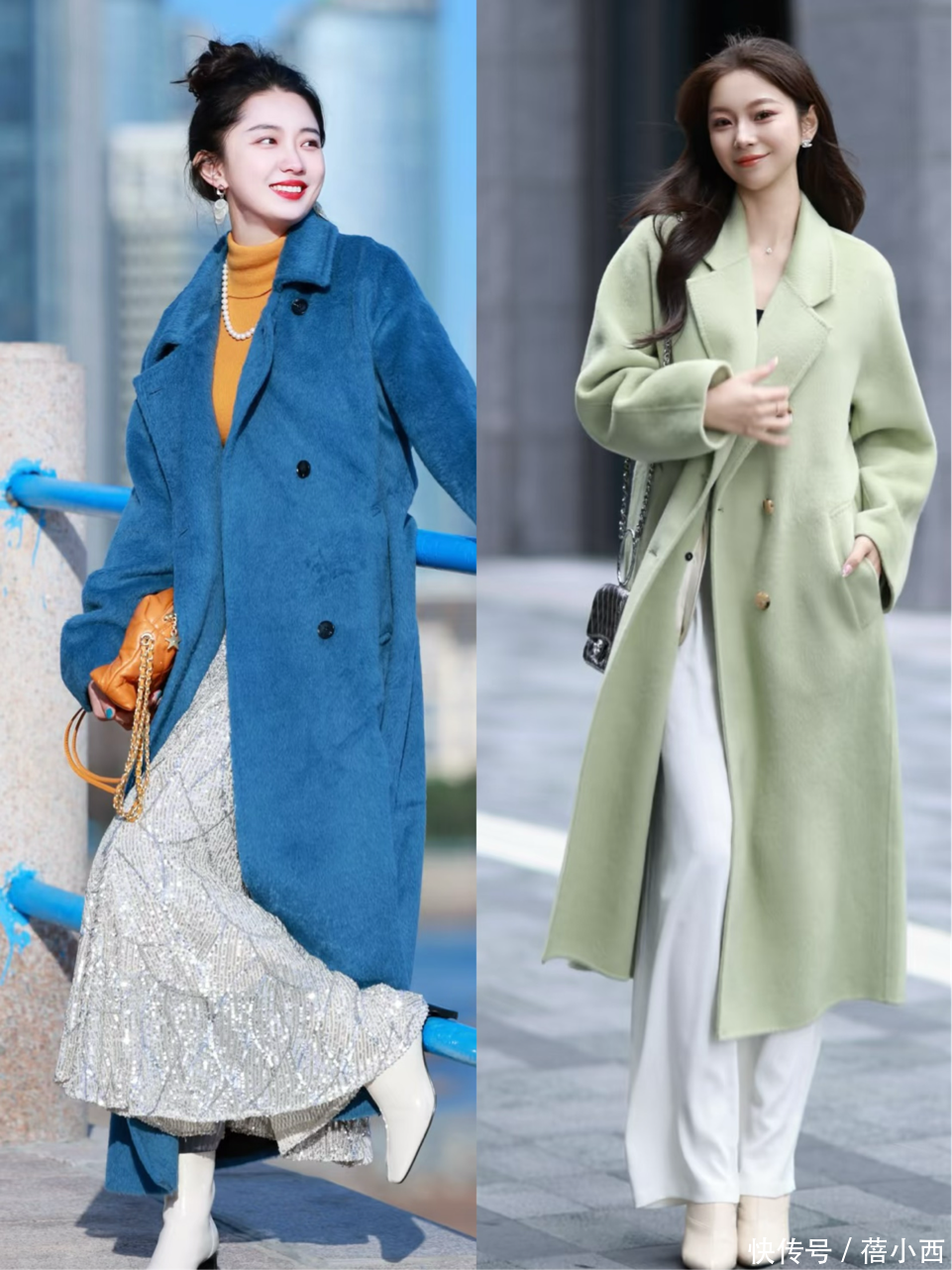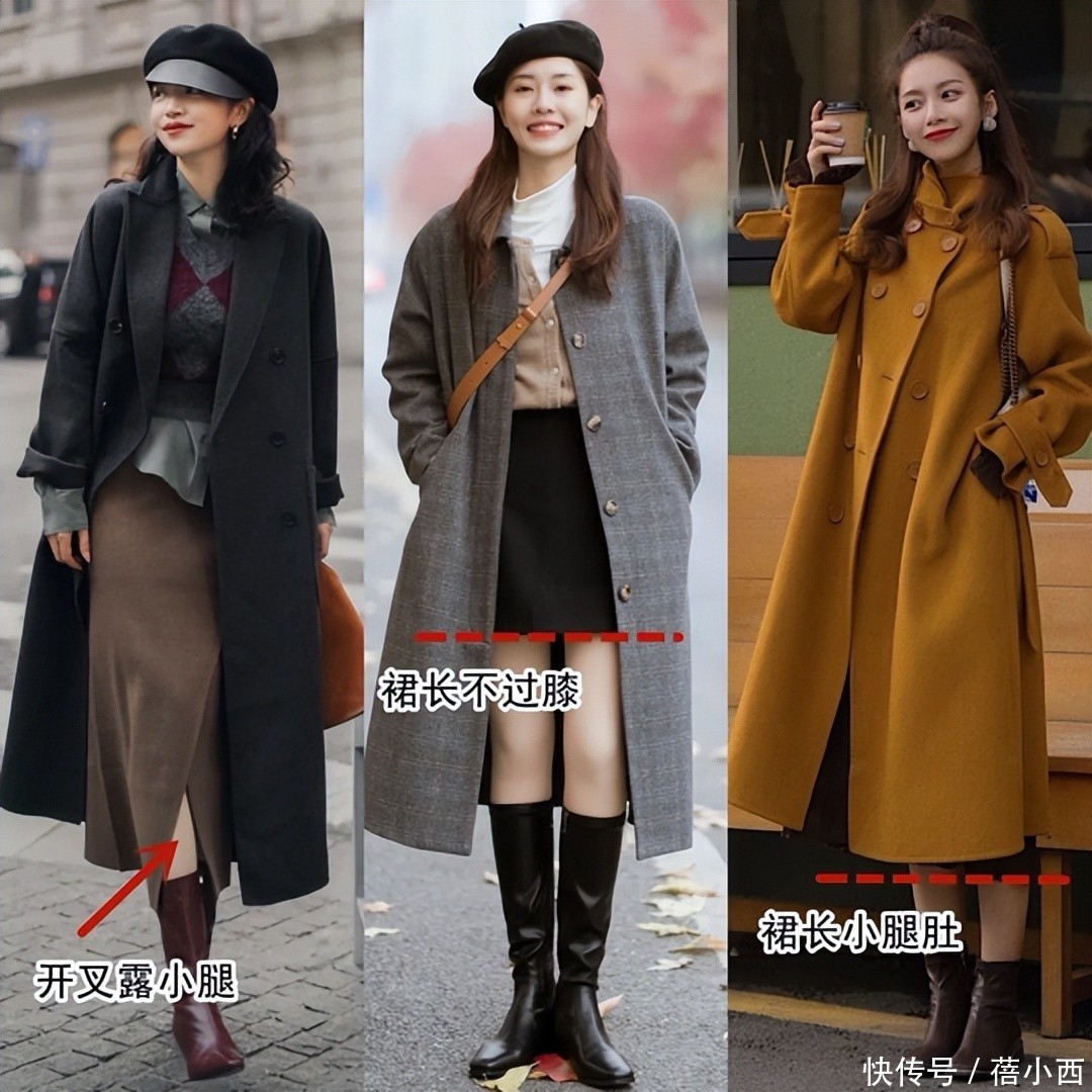 小个子女生优先选两种长度,一是及臀款,利落显精神,二是过膝但不踩脚款,能拉长身形比例。