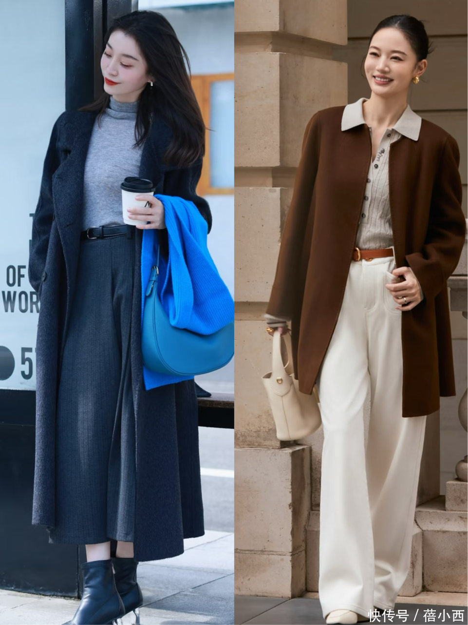 更重要的是,阔腿裤能完美遮盖腿部粗、腿型不直等问题,与“奶奶大衣”搭配,尽显大气优雅。穿的时候将大衣敞开,露出内搭的腰线,轻松打造“三七分”黄金身材比例,高个子穿气场全开,小个子穿也能显高显瘦。
