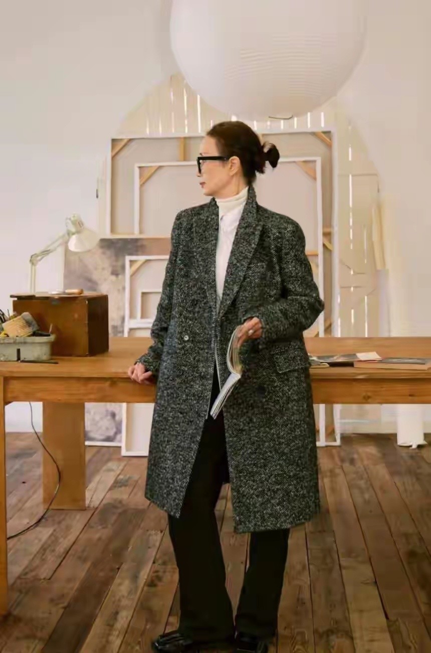 当然了,在这个冬季最少不了的,还有大衣外套,大衣外套一上身瞬间让你感到温暖,例如下面这一件浅绿色的翻领大衣外套,内搭驼色的针织开衫,叠加一件白色衬衫,下半身是一条灰色的修身牛仔裤,一双中筒靴来搭配就能很好的展现出你大长腿的优势,这样的穿衣风格走起路来自带风,显得又飒又美。