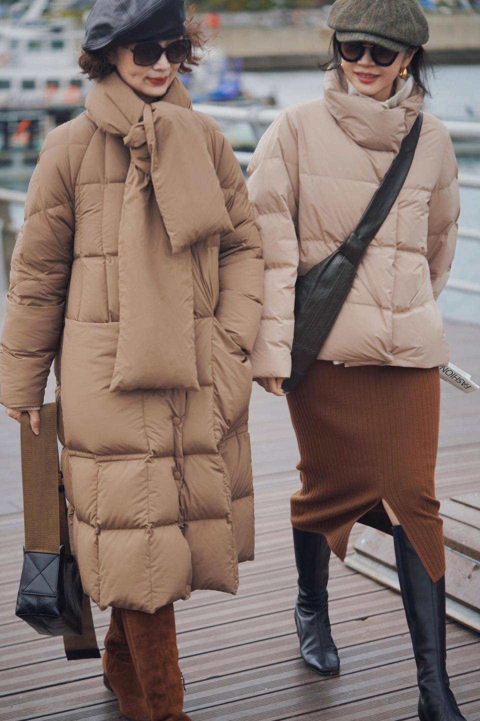 当然,你还可以选择长款的羽绒服外套,不过选择羽绒服外套的时候,千万不要过于蓬松,这样的话会显得过于臃肿,选择下面这种大格纹走线设计的羽绒服最佳,直接搭配一条直筒半身裙和中筒靴就够。