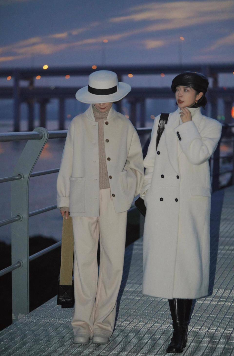 担心出错的情况下,直接选择下面这种白色的大衣外套,或者是短款的大衣外套,你直接搭配上白色的直筒裤或者是半身裙,脚上穿了一双黑色的皮质中筒靴就够,简简单单更高贵。